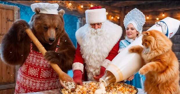 Хорошая компания и телевизор, каким вы его еще не видели, — пляшущие стрелки часов, огромный пончик на лоб Красной площади, хор бутербродов, Щелкунчики, Деды Морозы, мандарины и еще раз мандарины, а также шутки, зажигательные танцы и сказочный абсурд — в 722 новогодних роликах, созданных командой телеканала совместно с ИИ.
