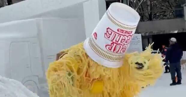 На 76-м Снежном фестивале в Саппоро (Sapporo Snow Festival 2026) бренд Cup Noodle представил рекламу с минимальным бюджетом. Основой кампании стала гигантская снежная скульптура в форме стакана лапши, размещенная на одной из главных площадок события. Внимание посетителей фестиваля также привлек человек в костюме лапши, который скатывался с большой снежной горки.