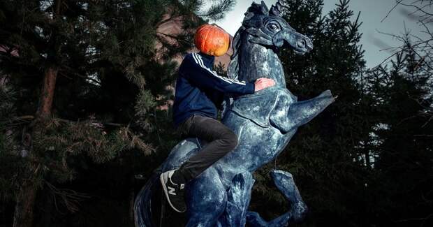 Моделью стал друг фотографа, а костюм состоит из обычной тыквы, олимпийки Adidas и банки пива «Балтика» — необычный образ хулигана с окраины.