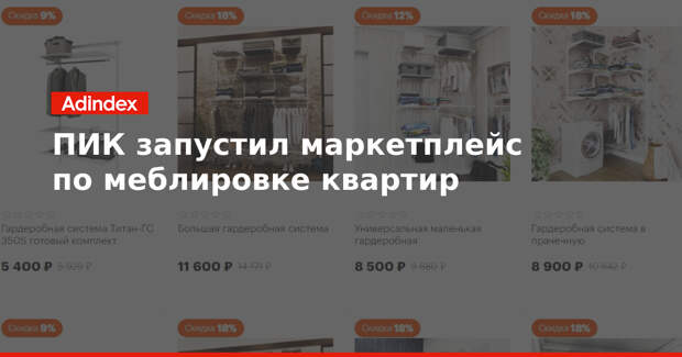 Застройщик ПИК создал платформу «ПИК-Маркет», где можно заказать мебель, кухонный гарнитур и бытовую технику для квартиры. Об этом говорится в поступившем в AdIndex сообщении. На сайте, помимо собственной продукции девелопера, будут представлены товары собственных брендов. На сайте представлены полностью готовые проекты меблировки и комплекты техники.