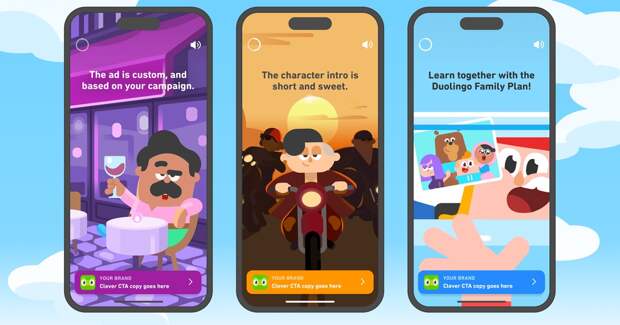 В рекламные форматы платформы встроятсяизвестные персонажи приложения (вроде нашумевшей в этом году совы Дуо).