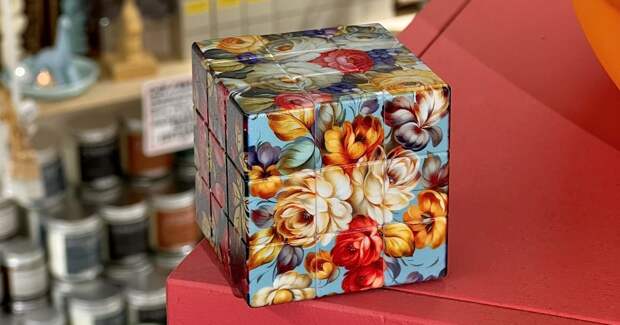 Жостовская фабрика и Friend Function создали кубик Рубика с цветочной росписью. На нем изображены композиции, которые были придуманы по мотивам работ художников предприятия. Каждая грань сделана с отдельным орнаментом. Он основан на традиционных декоративных разработках фабрики. Например: