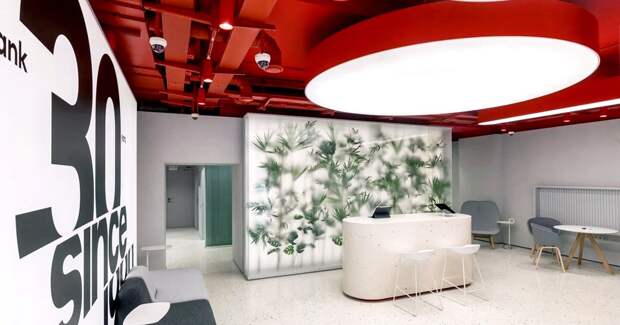 В банке поясняют, что отделение выполнено в концепции Phygital — от английского physical и digital, сочетание цифровых и физических каналов.