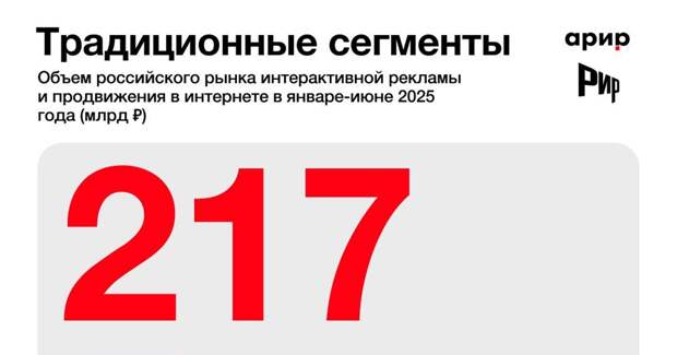 без учета НДС. Это на 10% превышает аналогичные показатели прошлого года. Максимальная доля вложений в традиционном сегменте интернет-рекламы пришлась на performance. Объемы этого канала оценили в 217 млрд руб. Это на 9% больше, чем в первой половине прошлого года. Сегмент branding показал рост на 16% — до 49 млрд руб. Внутри этой категории также развивается branding video — объем видеорекламы составил 16,5 млрд руб. в январе — июне 2025 г. Это на 23% больше, чем за аналогичный период 2024 г. Спрос на branding banners стал больше на 13%, достигнув 33 млрд руб. В целом динамика традиционных сегментов рынка digital-рекламы и продвижения сократилась до 9% во втором квартале 2025 г. «Такая динамика отражает общую экономическую ситуацию и обусловлена двумя ключевыми факторами: введением трехпроцентного сбора, снизившего рентабельность digital-сегмента, и эффектом высокой базы второго квартала 2024 г. Что касается прогнозов, то ключевым фактором оживления рынков, в том числе рекламного, большинство экспертов считает скорость снижения ключевой процентной ставки до конца года», — поясняет вице-президент АРИР Алексей Беляев.