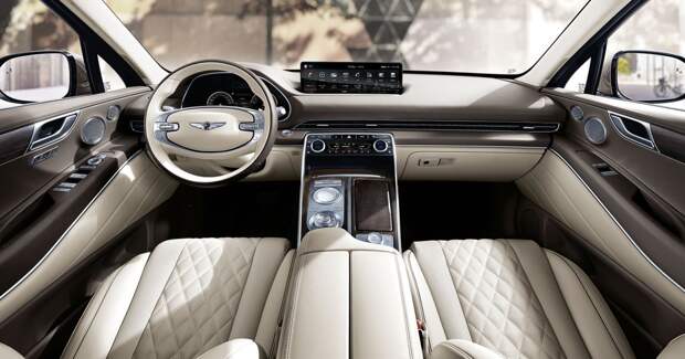 Уже в базовой комплектации GV80 получил 10 подушек безопасности, включая центральную подушку между сиденьями первого ряда.