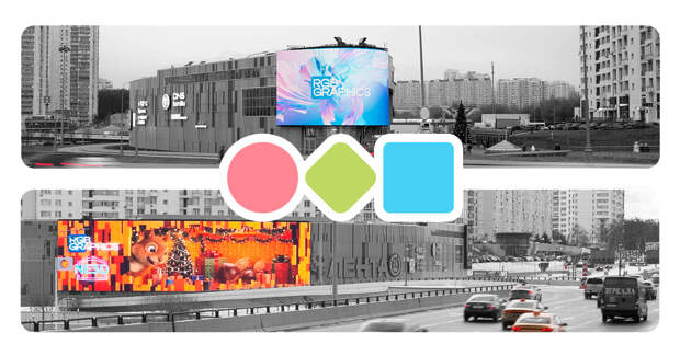 Медиафасад RGB Graphics. Ленинский проспект, 123В, сторона Б (в сторону области) В декабре RGB Graphics проводит конкурс на лучший креатив от бренда, размещающегося на новых медиафасадах.