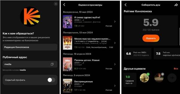 лента «Оценки и просмотры» и функционал из мобильной версии. В приложениях