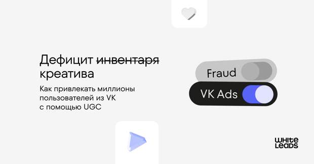 Кампания Whiteleads х «Звук» в «VK Рекламе» Резюме Сегодня «VK Клипы» — крупнейший по аудитории плейсмент коротких видео в России и один из самых востребованных форматов контента внутри платформы. Используя UGC-креативы, бренды получают преимущество в аукционе и доступ к качественной аудитории. При этом в VK практически отсутствует фрод, а видеоформат позволяет лучше влиять на качество трафика и улучшать ключевые метрики: RR, ER, GMV и другие. За счет высокой кликабельности и нативной подачи UGC-креативы обеспечивают более низкие CPI (Cost per Install — стоимость одной установки приложения) и CPA (Cost per Action — стоимость действия).