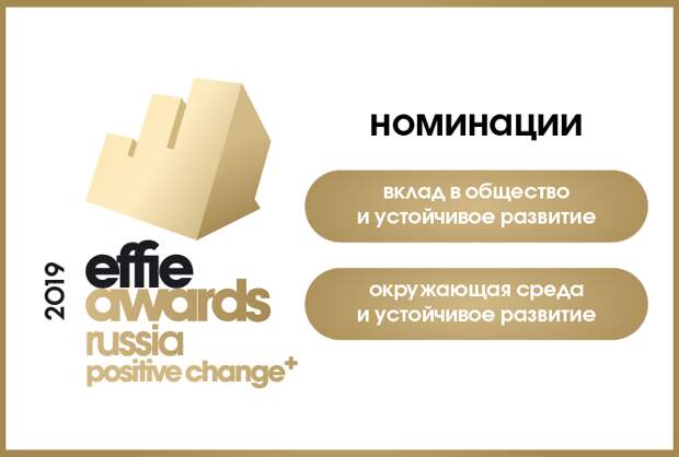 В апреле 2019 года в рамках Церемонии награждения Effie Awards Russia впервые будет вручена главная мировая награда за эффективность в общественно-значимых коммуникациях Effie Positive Change (совместный проект Effie Worldwide и Всемирного Экономического Форума впервые будет реализован на национальном уровне)