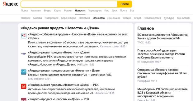 Компания «Яндекс» собирается продать «Яндекс.Новости» и «Яндекс.Дзен»,