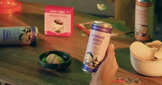 Онлай-ретейлер «Самокат» и приключенческая ролевая игра с открытым миром Genshin Impact представили тематические лимитированные новинки и эксклюзивный мерч. Упаковки дополнены образами Арлекино и Фремине. Сами товары выполнены в стилистике Genshin Impact. Пользователям предлагают моти со вкусом бабл-гам, чипсы с креветкой темпура и васаби, наборы макаронс и шоколадных бомбочек.