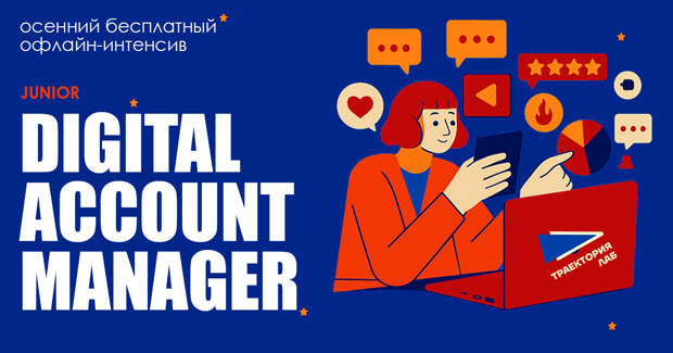 Аккаунты нужны везде и всем! Спрос на эту профессию есть всегда, а талантливых людей — единицы. «Траектория Лаб» запускает экспериментальный офлайн-интенсив Junior Digital Account Manager.