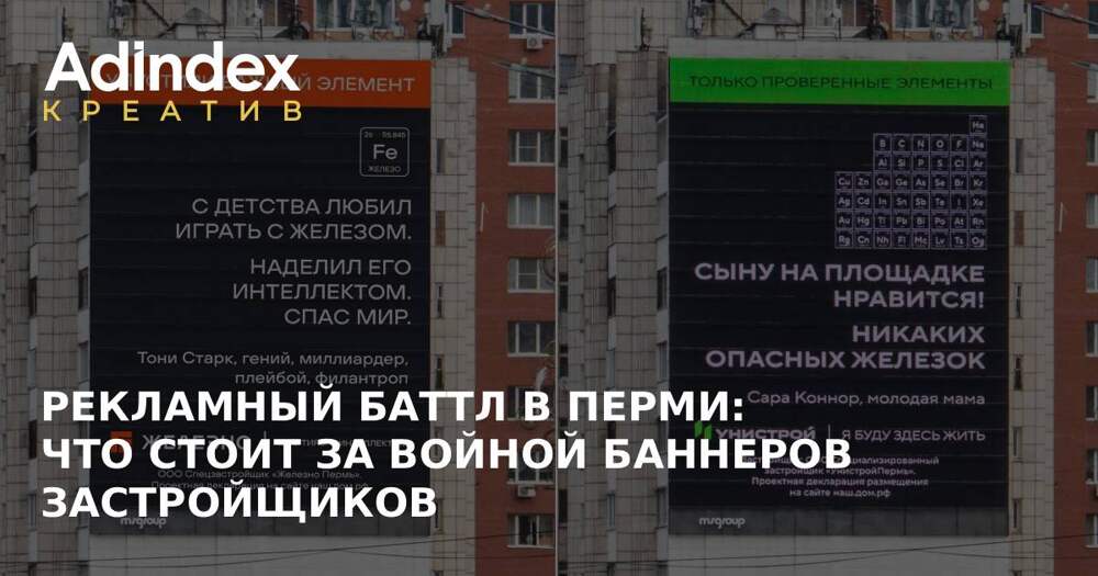 Первый раунд: «Унистрой» против «Железно» Рекламное противостояние началось с креатива застройщика «Унистрой», который бросил вызов компании «Железно». Используя в своем креативе химические элементы, «Унистрой» намекнул на сомнительное качество материалов на детских площадках конкурента.